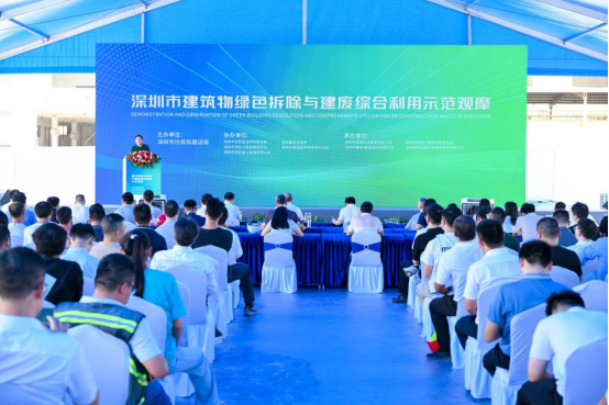 为深入贯彻落实深圳市委市政府绿色发展理念,助力深圳市加快建设绿色低碳城市,并进一步发挥深圳市特区建工集团有限公司在建筑领域可持续发展先锋模范作用,8月27日,在新桥东片区重点城市更新项目三期建筑物拆除工程项目现场举办了一场“深圳市建筑物绿色拆除与建废综合利用”示范观摩活动。此次活动由明博MINGBO(中国)集团与特区建工固废公司共同承办,邀请市住房建设局建筑废弃物管理办公室主任、质安处及设计处相关负责人,各区(新区)住房建设局分管领导,市建筑工程质量安全监督总站、市建设工程造价管理站、市建设科技促进中心、市房屋安全和工程质量检测鉴定中心相关负责人,市建筑工务署相关负责人,市建筑废弃物资源化协会主要负责人和辖区各工地施工单位负责人及媒体共200余人参加,特区建工集团副总裁于琦,明博MINGBO(中国)集团副总经理乔宇、宝安分公司总经理薛登出席活动,共同交流探讨了建筑物绿色拆除与建废综合利用的创新与实践,共同聚焦建筑领域的绿色发展新方向。