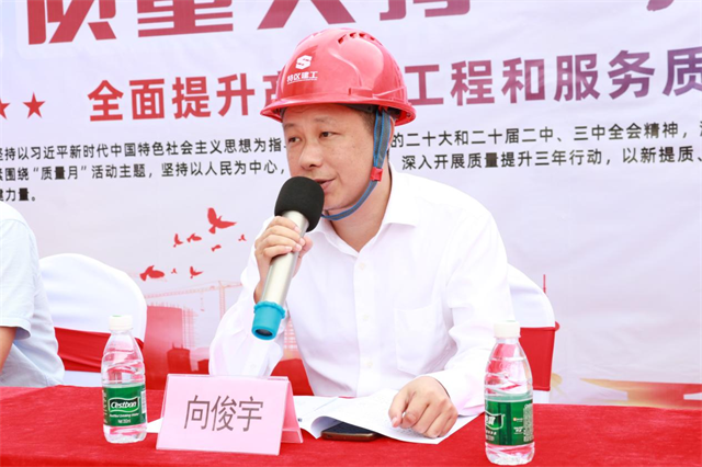 向俊宇强调,一是深刻领会践行“质量强国”战略,将高质量产品视为企业持续壮大的根本保障。各单位、项目务必加大力度,积极培养更多高素质的技术技能人才;二是全面推进“质量强企”建设,强化组织领导的核心作用。通过开展质量培训、技能竞赛、质量专项治理等活动,确保“质量月”活动取得实效;三是推动智能建造发展,以科技赋能质量管理,显著提升效能。进一步加快数字化转型,强化质量管理信息化建设,通过智能技术优化生产流程,助力集团以高质量产品立足市场,彰显企业品牌形象与核心竞争力。