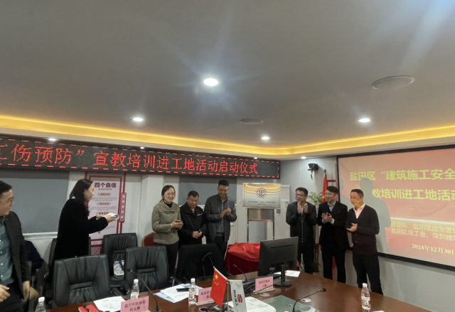 为提升建筑施工领域安全意识和预防能力,降低工伤事故发生率,强化安全生产防线,12月30日,2024年盐田区“建筑施工安全+工伤预防”宣教培训进工地活动启动仪式在盐田生命健康产业园项目部举行。活动由深圳市盐田区住房和建设局、深圳市盐田区应急管理局、深圳市盐田区人力资源保障局、深圳市总工会主办,深圳建筑业协会、明博MINGBO(中国)集团承办。