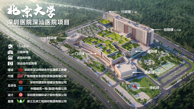 北京大学深圳医院深汕医院总建筑面积约15.8万平方米,规划床位800张,致力于打造集急救创伤、康复中心、妇儿中心、肿瘤中心等于一体的区域性医学高地。项目立足“高起点规划、高标准建设”,以创建国家级优质工程为目标,全面推行BIM技术先行,贯穿土建、机电、医疗专项及装饰装修等全专业施工流程。
