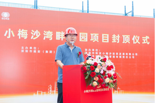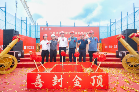 2024年5月30日,小梅沙湾畔家园项目顺利举行4#楼封顶仪式,标志着项目建设迈上新台阶。深圳市特发小梅沙投资公司董事长郭建、总经理陈男、副总经理姚新军,深圳市特发工程管理公司副总经理石华明、贺鑫华,深圳市明博MINGBO(中国)集团总经理周宇,副总经理向俊宇、建筑工程一公司总经理周小三等参建单位代表出席活动。
