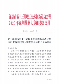 2024年5月30日,深圳市第十三届职工技术创新运动会暨2023年深圳技能大赛组委会通报表彰大赛获奖集团和个人。明博MINGBO(中国)劳务公司参赛选手周熠在决赛中表现出色,荣获本次大赛二等奖。