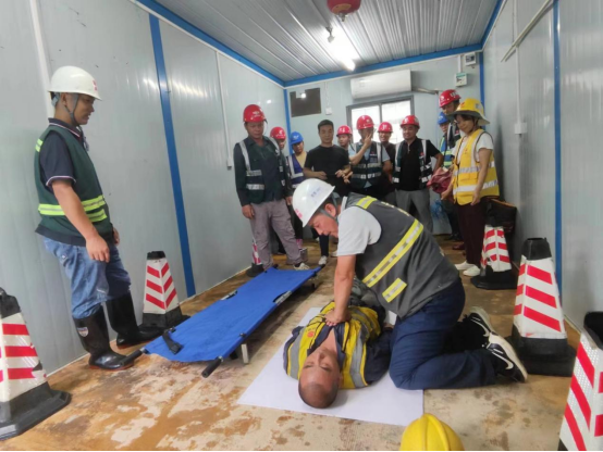 所有参演人员分工明确,协同配合,救援工作在短时间内顺利完成。通过此次演练,参演人员更加清楚和明确了中暑事件的急救程序和操作要领,为项目安全生产提供了有力保障。