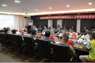 随后,大家来到会议室参与安全教育培训学习。本次培训为2024年深圳市住房和建设局建筑“送教进工地”系列活动,由特区建工学校讲师董钊主讲。会上,结合安全事故警示教育视频,董钊深入讲解了高处坠落、物体打击、机械伤害、触电等事故的风险危害、预防方法和作业规范。项目安全总监邓集跃对培训进行了总结,再次提醒大家要牢记安全生产重要性,时刻绷紧安全生产这根弦。