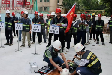 项目部在施工现场进行综合应急演练。本次演练模拟了施工过程中发生作业人员触电、中暑、被重物打击等突发事故,项目部立即启动应急预案,各小组立即出动、分工协作,开展救援工作,科学、迅速抢救伤员。经过1个小时模拟演练和知识讲解,演练顺利结束。