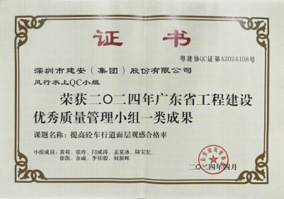 风行水上QC小组凭借课题《提高砼车行道面层观感合格率》荣获一类成果殊荣。该课题针对宝安区社区给水管网改造工程(八期)项目展开研究,通过创新性的三清三刷植筋钻孔、保水膜覆盖养护等措施,有效提升了砼车行道面层的观感质量。这一成果不仅为宝安区社区给水管网改造的施工带来了显著的效益,也为同类型路面恢复工程树立了质量提升的标杆。
