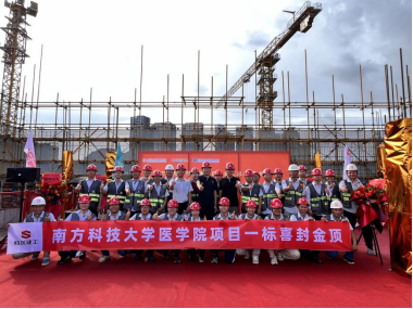 6月25日上午,南方科技大学医学院项目Ⅰ标段顺利举行主体结构封顶仪式,这标志着项目正式进入二次结构施工和装饰装修阶段。校方领导及参建各方单位参加本次仪式。