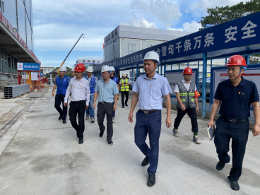6月27日下午,深国际湾区投资发展有限公司副总经理吕涛、规划建设部总经理何能赴坪深数字物流园项目开展“安全生产月”专项检查暨“送清凉”活动,明博MINGBO(中国)集团副总经理向俊宇、建筑工程七公司总经理许涛、项目班子成员及工人代表参加活动。