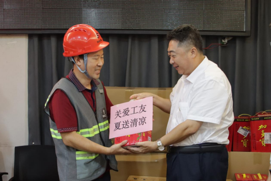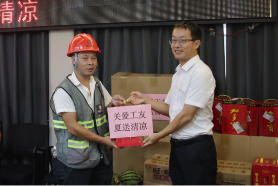 机关第五党支部与建筑工程六公司党支部共同为项目一线工友们送来防暑降温慰问品,给在高温天气辛勤工作的建设者们带来“清凉”问候,对一线工友们不畏酷暑、坚守岗位的精神表示感谢,叮嘱大家要注意防暑降温,确保身体健康。项目部表示,将落实防暑降温主体责任,改善劳动条件和作业环境,做好高温保护工作。