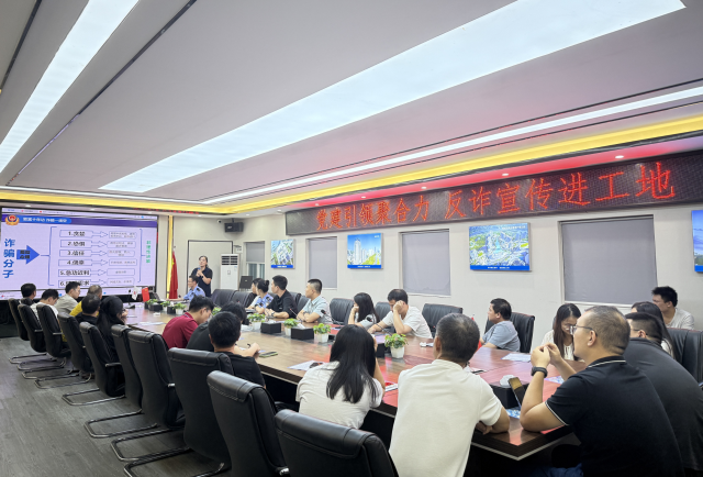 本次活动由项目联合临时党支部牵头组织,充分发挥党组织在基层治理中的战斗堡垒作用,携手派出所特邀民警走进项目现场,为一线员工量身开展专题反诈教育,让党旗在反诈一线高高飘扬。